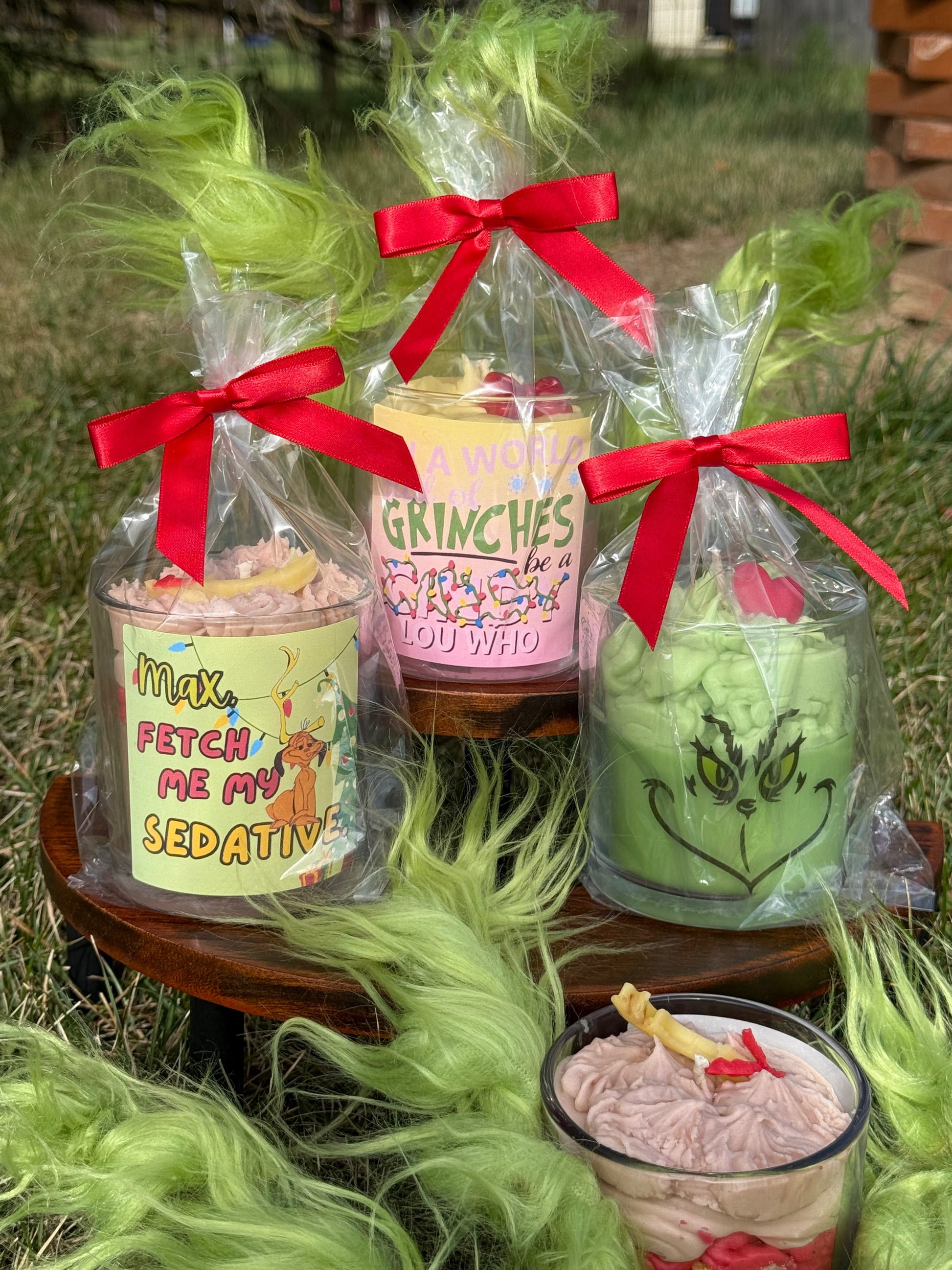 💚 The Grinch – Available in Vanilla or our signature Grinch scent — a mischievous mix of cozy sweetness and a hint of holiday sass.